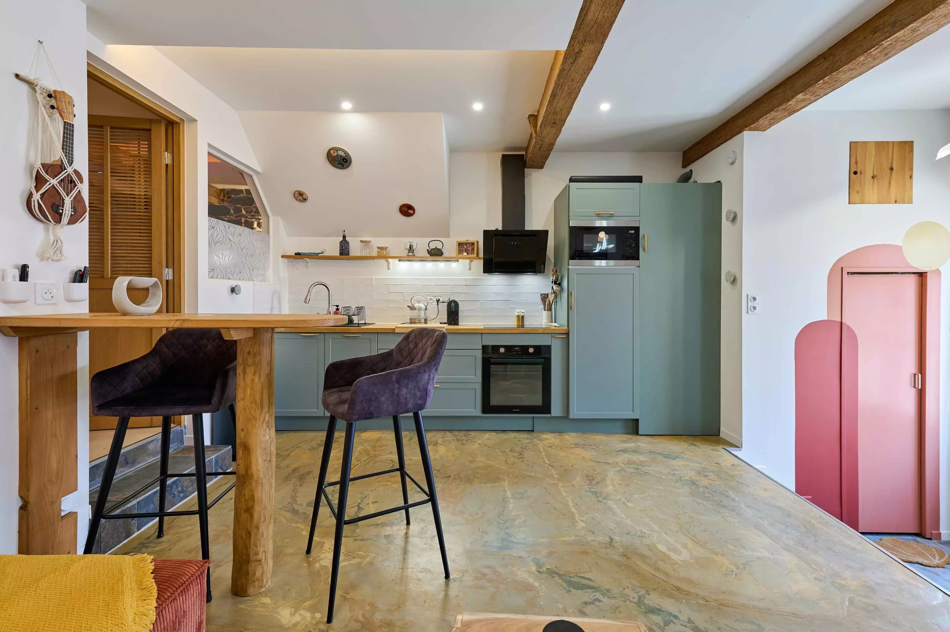 Le Calypso est un appartement atypique entièrement rénové en 2025 en famille, dans un esprit d’authenticité pour créer une ambiance sensuelle et confortable, sans ostentation ni clichés.